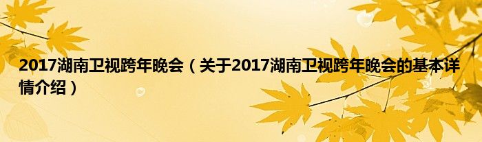 本文关于2017湖南卫视跨年晚会的基本详情介绍就讲解完毕,希望对大家有所帮助。