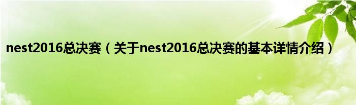 本文关于nest2016总决赛的基本详情介绍就讲解完毕,希望对大家有所帮助。