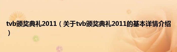 本文关于tvb颁奖典礼2011的基本详情介绍就讲解完毕,希望对大家有所帮助。