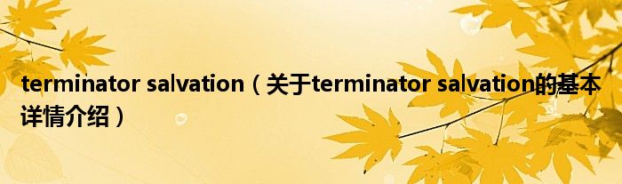 本文关于terminator salvation的基本详情介绍就讲解完毕,希望对大家有所帮助。