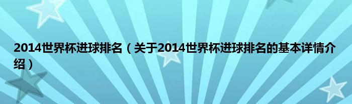 本文关于2014世界杯进球排名的基本详情介绍就讲解完毕,希望对大家有所帮助。