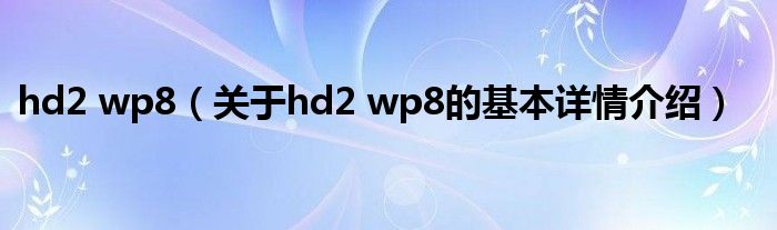 本文关于hd2 wp8的基本详情介绍就讲解完毕,希望对大家有所帮助。