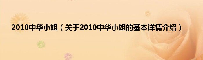 本文关于2010中华小姐的基本详情介绍就讲解完毕,希望对大家有所帮助。