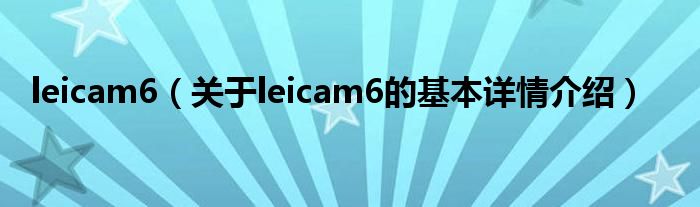 本文关于leicam6的基本详情介绍就讲解完毕,希望对大家有所帮助。