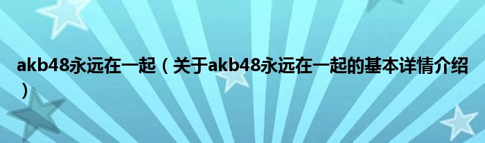 本文关于akb48永远在一起的基本详情介绍就讲解完毕,希望对大家有所帮助。