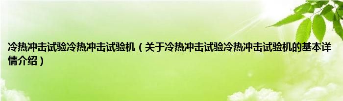 本文关于冷热冲击试验冷热冲击试验机的基本详情介绍就讲解完毕,希望对大家有所帮助。