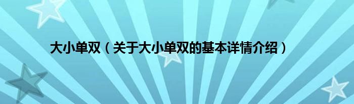 本文关于大小单双的基本详情介绍就讲解完毕,希望对大家有所帮助。