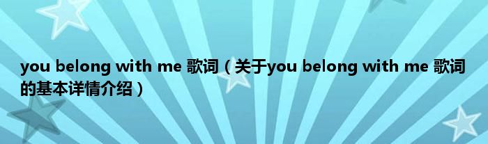 本文关于you belong with me 歌词的基本详情介绍就讲解完毕,希望对大家有所帮助。
