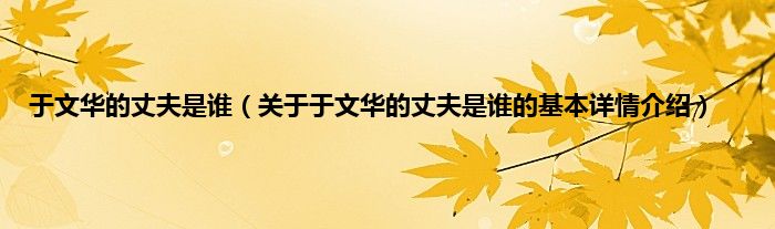本文关于于文华的丈夫是谁的基本详情介绍就讲解完毕,希望对大家有所帮助。