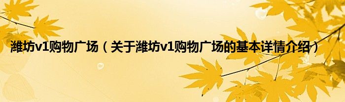 本文关于潍坊v1购物广场的基本详情介绍就讲解完毕,希望对大家有所帮助。