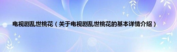 本文关于电视剧乱世桃花的基本详情介绍就讲解完毕,希望对大家有所帮助。