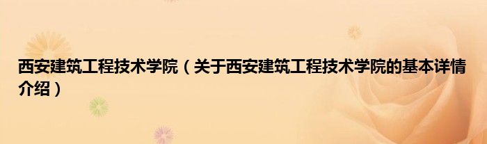 本文关于西安建筑工程技术学院的基本详情介绍就讲解完毕,希望对大家有所帮助。
