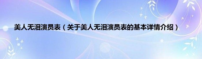 本文关于美人无泪演员表的基本详情介绍就讲解完毕,希望对大家有所帮助。