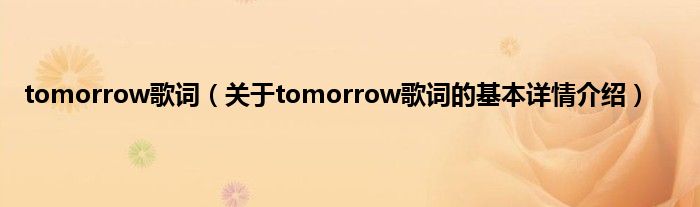 本文关于tomorrow歌词的基本详情介绍就讲解完毕,希望对大家有所帮助。