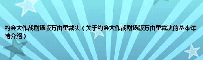 本文关于约会大作战剧场版万由里裁决的基本详情介绍就讲解完毕,希望对大家有所帮助。