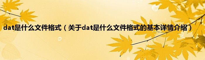 本文关于dat是什么文件格式的基本详情介绍就讲解完毕,希望对大家有所帮助。