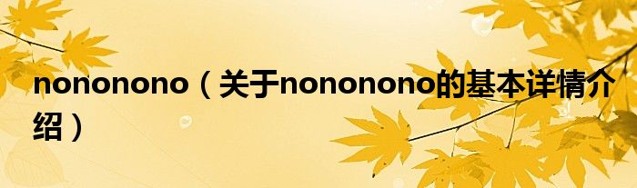 本文关于nononono的基本详情介绍就讲解完毕,希望对大家有所帮助。