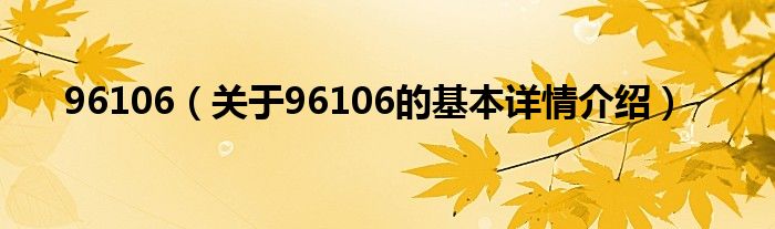 本文关于96106的基本详情介绍就讲解完毕,希望对大家有所帮助。