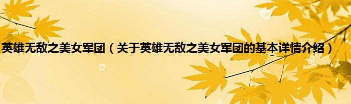 本文关于英雄无敌之美女军团的基本详情介绍就讲解完毕,希望对大家有所帮助。
