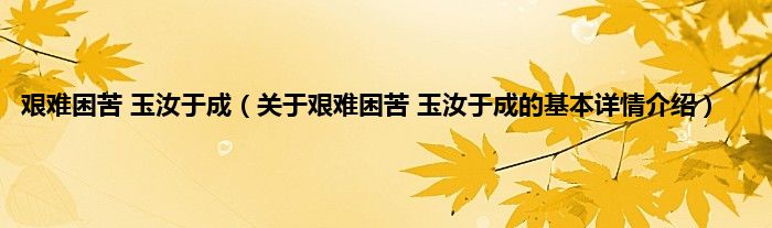 本文关于艰难困苦 玉汝于成的基本详情介绍就讲解完毕,希望对大家有所帮助。