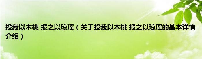 本文关于投我以木桃 报之以琼瑶的基本详情介绍就讲解完毕,希望对大家有所帮助。