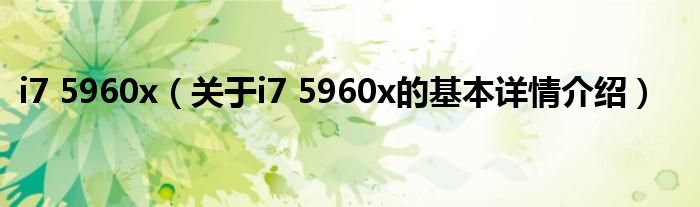 本文关于i7 5960x的基本详情介绍就讲解完毕,希望对大家有所帮助。