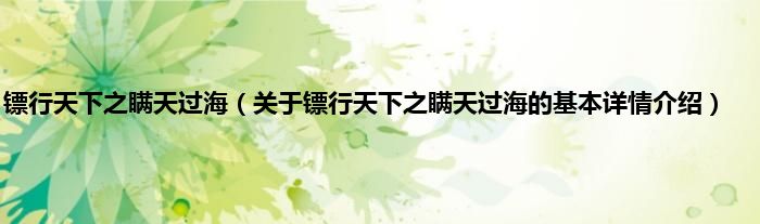 本文关于镖行天下之瞒天过海的基本详情介绍就讲解完毕,希望对大家有所帮助。
