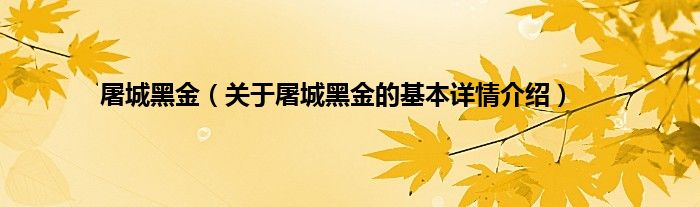 本文关于屠城黑金的基本详情介绍就讲解完毕,希望对大家有所帮助。