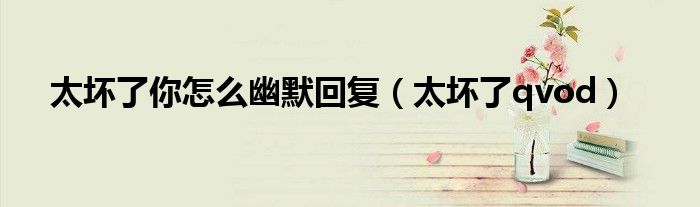 以上就是【太坏了你怎么幽默回复,太坏了qvod】相关内容。