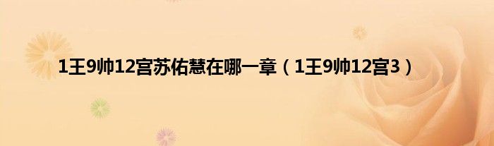 大家好,小问来为大家解答以上问题。1王9帅12宫苏佑慧在哪一章,1王9帅12宫3这个很多人还不知道,现在让我们一起来看看吧!