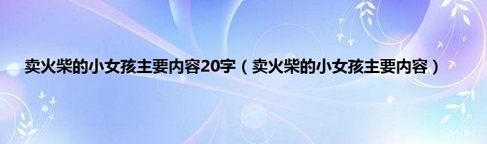 以上就是【卖火柴的小女孩主要内容20字,卖火柴的小女孩主要内容】相关内容。