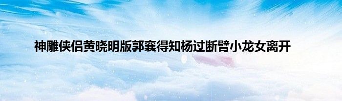 大家好,小问来为大家解答以上问题。神雕侠侣黄晓明版郭襄得知杨过断臂小龙女离开这个很多人还不知道,现在让我们一起来看看吧!