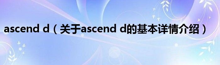 本文关于ascend d的基本详情介绍就讲解完毕,希望对大家有所帮助。