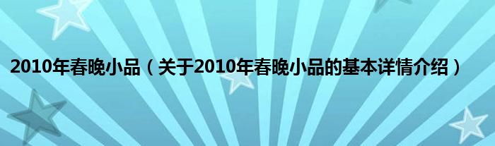 本文关于2010年春晚小品的基本详情介绍就讲解完毕,希望对大家有所帮助。