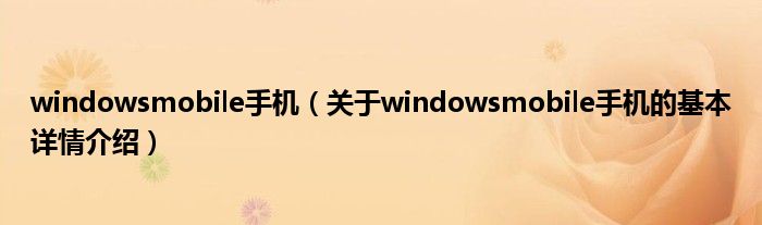 本文关于windowsmobile手机的基本详情介绍就讲解完毕,希望对大家有所帮助。