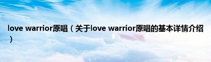 本文关于love warrior原唱的基本详情介绍就讲解完毕,希望对大家有所帮助。