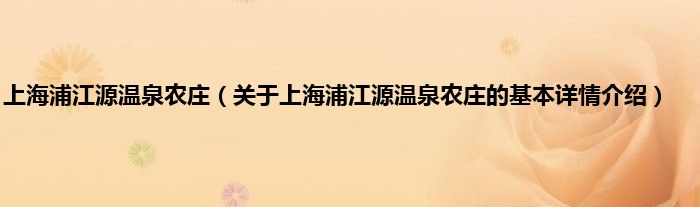 本文关于上海浦江源温泉农庄的基本详情介绍就讲解完毕,希望对大家有所帮助。