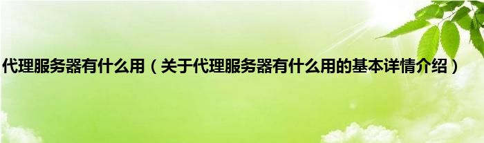 本文关于代理服务器有什么用的基本详情介绍就讲解完毕,希望对大家有所帮助。