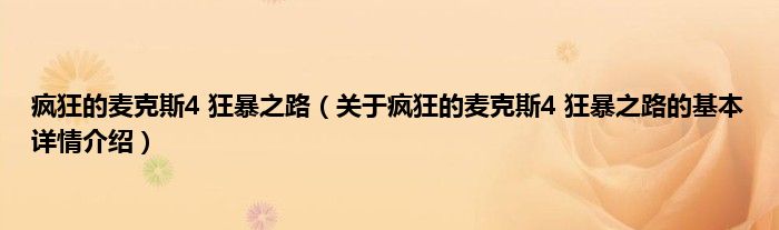 本文关于疯狂的麦克斯4 狂暴之路的基本详情介绍就讲解完毕,希望对大家有所帮助。