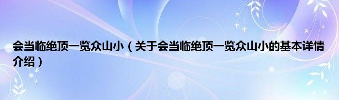 本文关于会当临绝顶一览众山小的基本详情介绍就讲解完毕,希望对大家有所帮助。