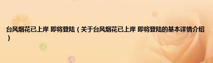 本文关于台风烟花已上岸 即将登陆的基本详情介绍就讲解完毕,希望对大家有所帮助。
