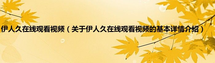 本文关于伊人久在线观看视频的基本详情介绍就讲解完毕,希望对大家有所帮助。