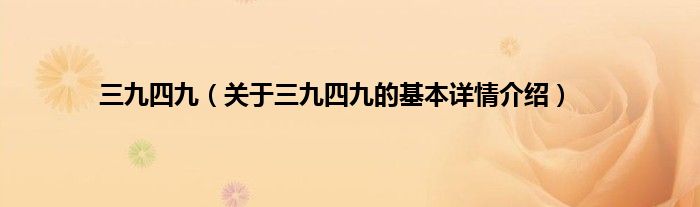 本文关于三九四九的基本详情介绍就讲解完毕,希望对大家有所帮助。