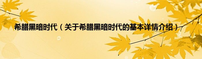 本文关于希腊黑暗时代的基本详情介绍就讲解完毕,希望对大家有所帮助。