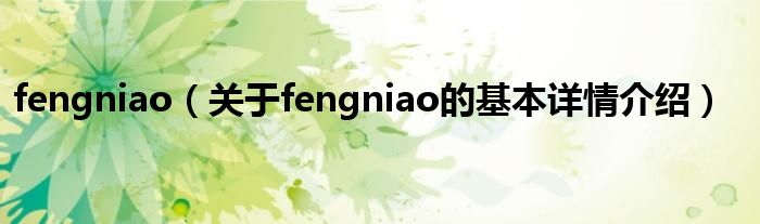 本文关于fengniao的基本详情介绍就讲解完毕,希望对大家有所帮助。