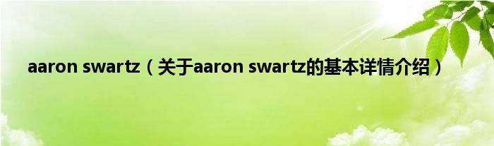 本文关于aaron swartz的基本详情介绍就讲解完毕,希望对大家有所帮助。