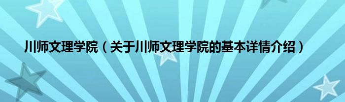 本文关于川师文理学院的基本详情介绍就讲解完毕,希望对大家有所帮助。