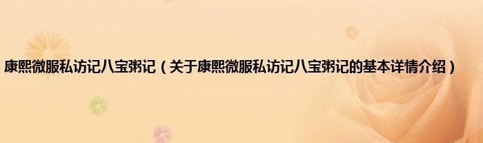 本文关于康熙微服私访记八宝粥记的基本详情介绍就讲解完毕,希望对大家有所帮助。