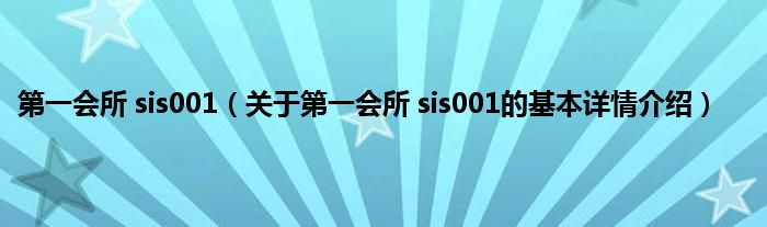 本文关于第一会所 sis001的基本详情介绍就讲解完毕,希望对大家有所帮助。