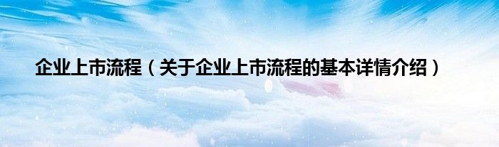 本文关于企业上市流程的基本详情介绍就讲解完毕,希望对大家有所帮助。